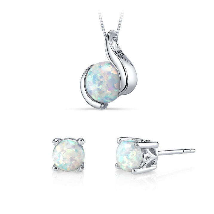 • elegantes Set aus Kette mit Anhänger und Ohrsteckern mit weißen Opalen