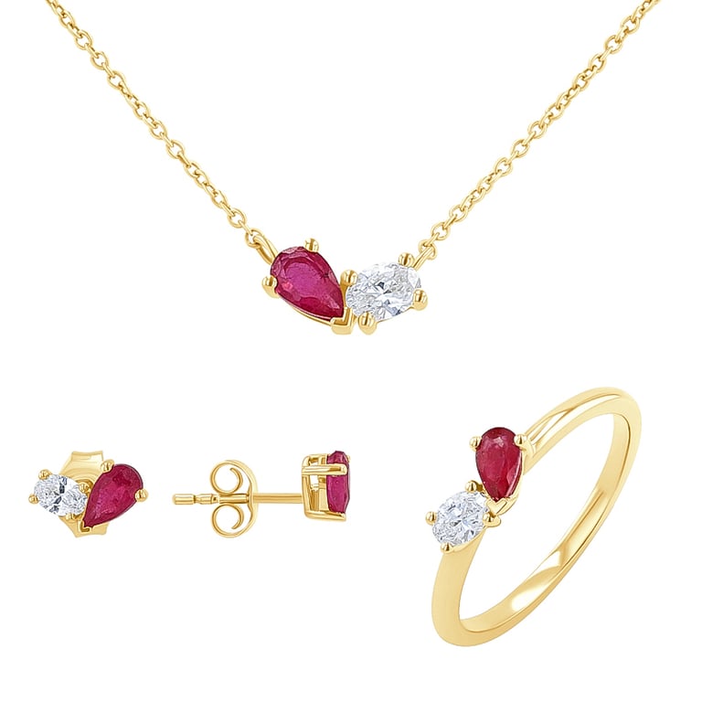 Schmuckset Toi et Moi mit Rubin und Lab Grown Diamant Ethelmary