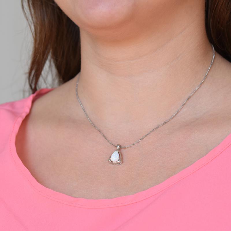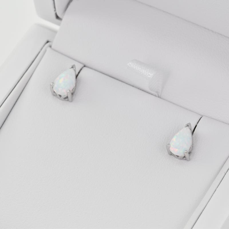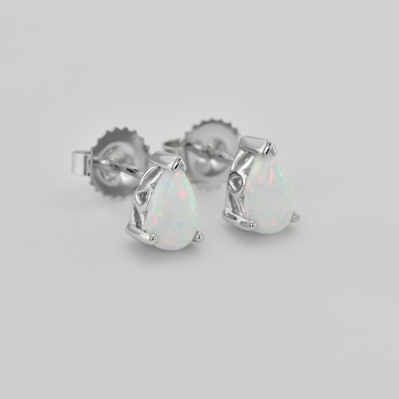 • tropfenförmige weiße Opale, die in allen Regenbogenfarben schimmern, wurden hier verarbeitet