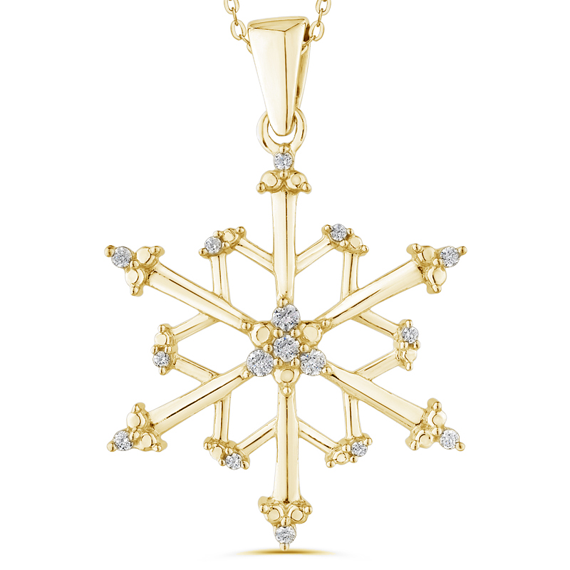 • in diesem Goldanhänger mit Diamanten ist die Eleganz und eisige Schönheit von Schneeflocken eingefangen