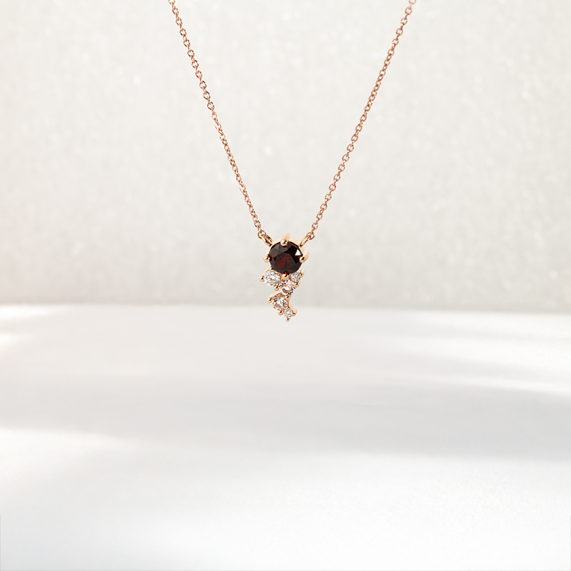 • ein Set von Schmuckstücken im Cluster-Stil, die die Schönheit des tschechischen Granats feiert