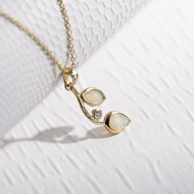 Set aus Schmuck in Blattform mit Opalen und Diamanten Petal