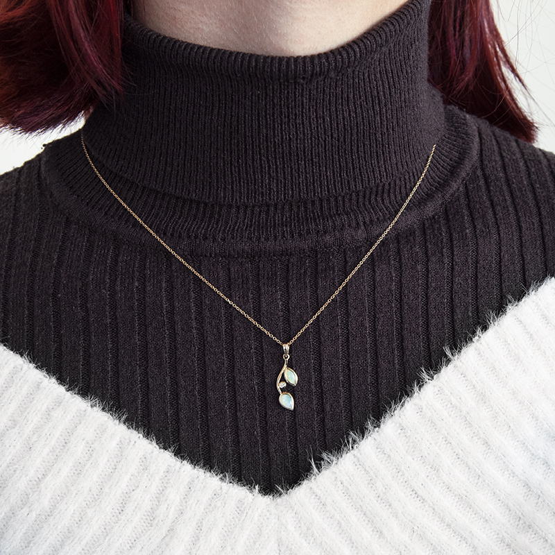 • 6 weiße Opale in Marquise- und Birnenform sorgen zusammen für farbenfrohe Reflexe in verschiedenen Farbtönen