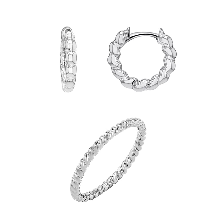 • silberne Ohrringe und ein Ring mit der Möglichkeit einer Vergoldung mit Gelbgold