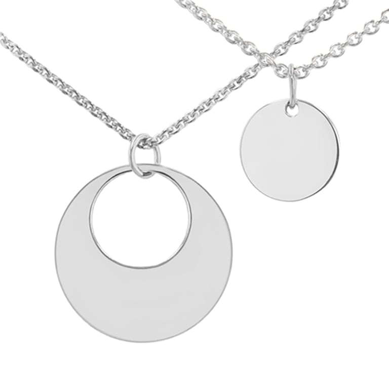 • zwei minimalistische Anhänger mit einem Symbol für Kreis oder Karma