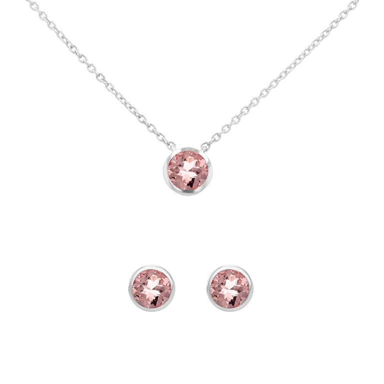 • Set aus Halskette und Ohrringen mit pastellrosa Morganit
