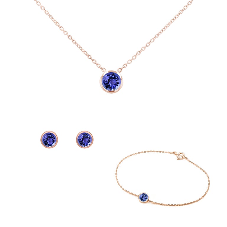 Set aus zarten Schmuckstücken mit Tansaniten Tolar