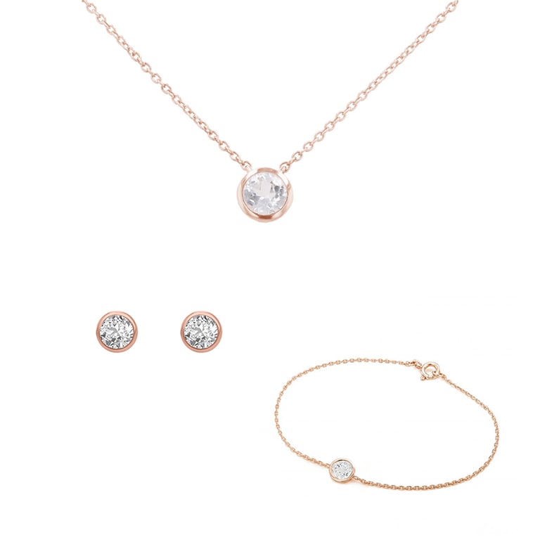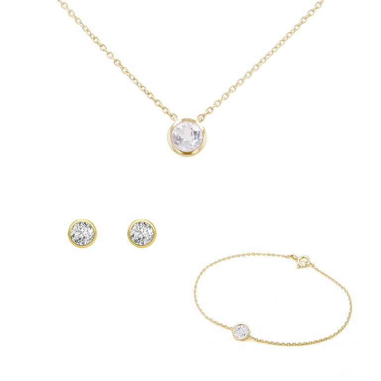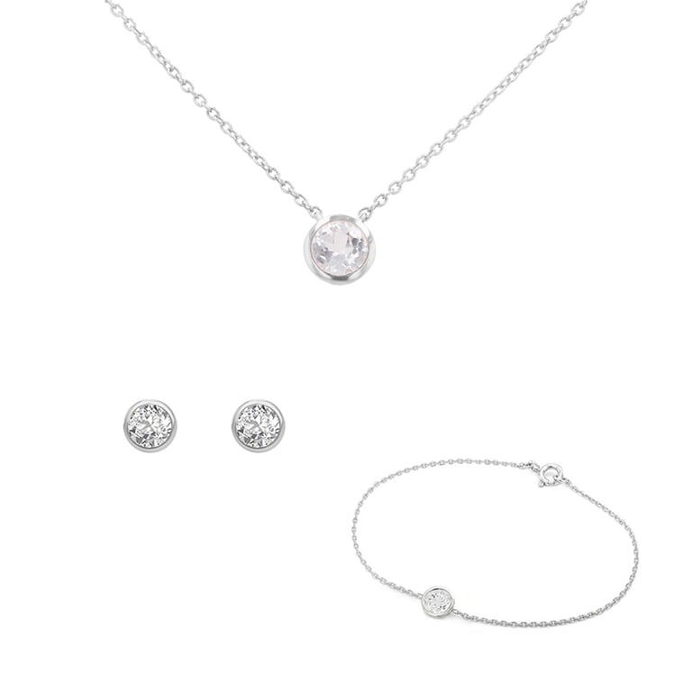 Set aus zarten Schmuckstücken mit weißen Topasen Tolar