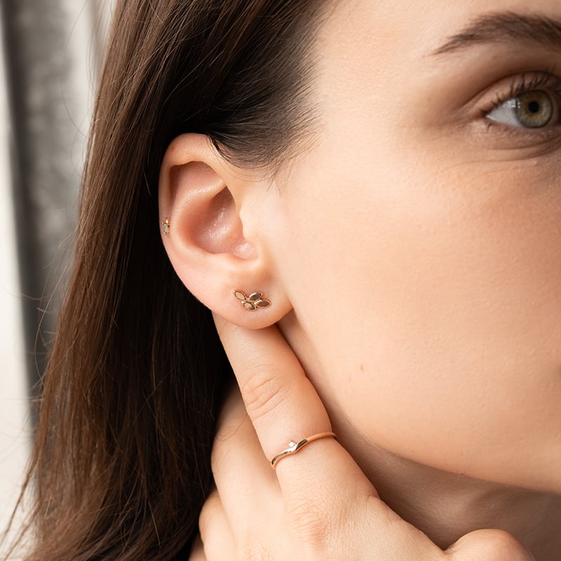• schmücken Sie Ihre Ohrläppchen mit bezaubernden Blättchen aus Gelbgold