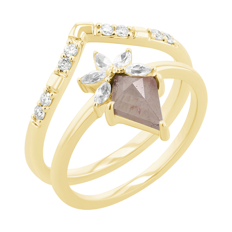 • das Verlobungsmodell besticht durch seine einzigartige Kombination aus einem zentralen Salt and Pepper Diamanten und Moissaniten