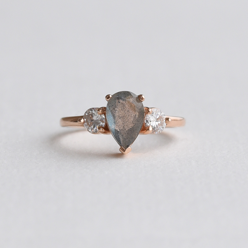 • bezauberndes Set mit Verlobungs- und Trauring mit Labradorit und glänzenden Moissaniten