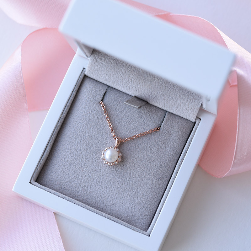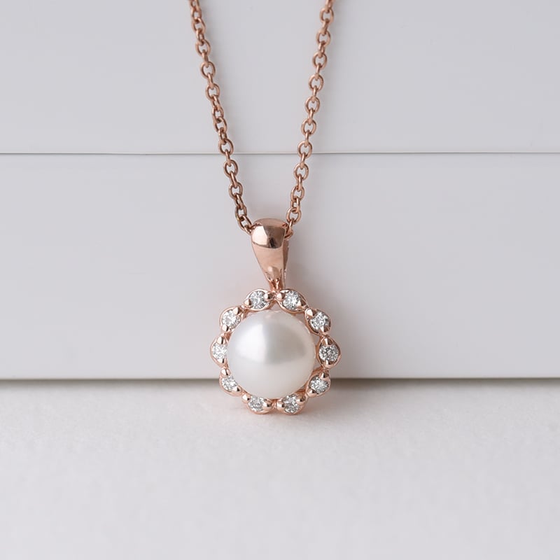 • ein raffiniertes Schmuckstück mit Perlen und Diamanten