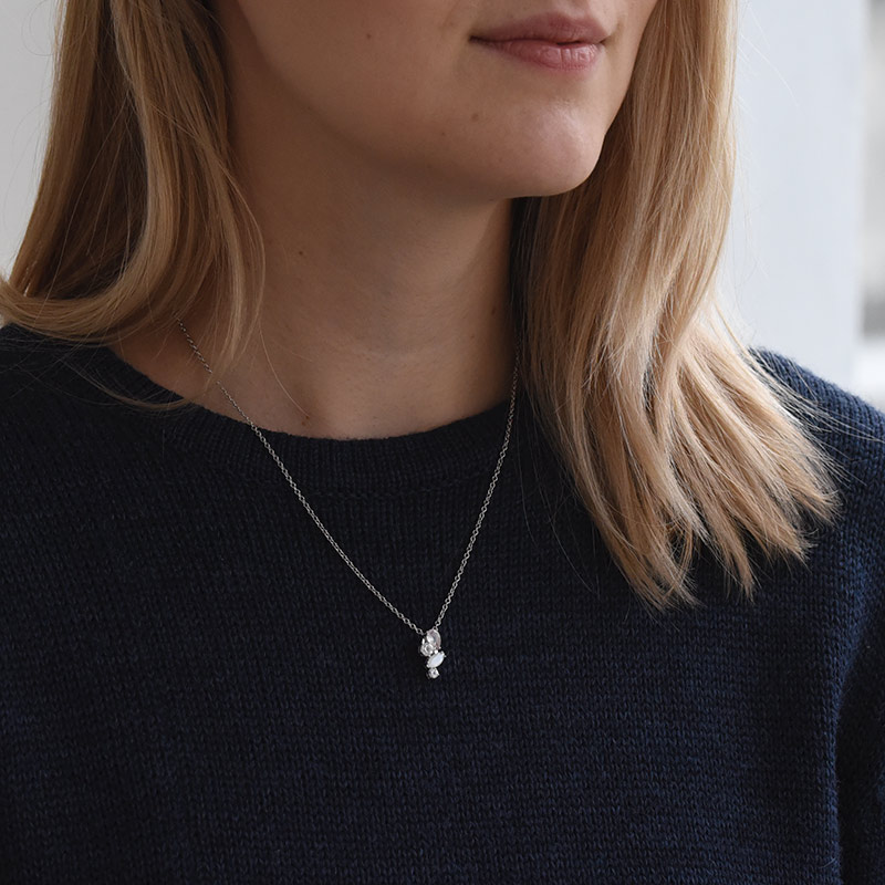 • der Anhänger in Silber mit Edelsteinen im Clusterstil ist romantisch und modern zugleich
