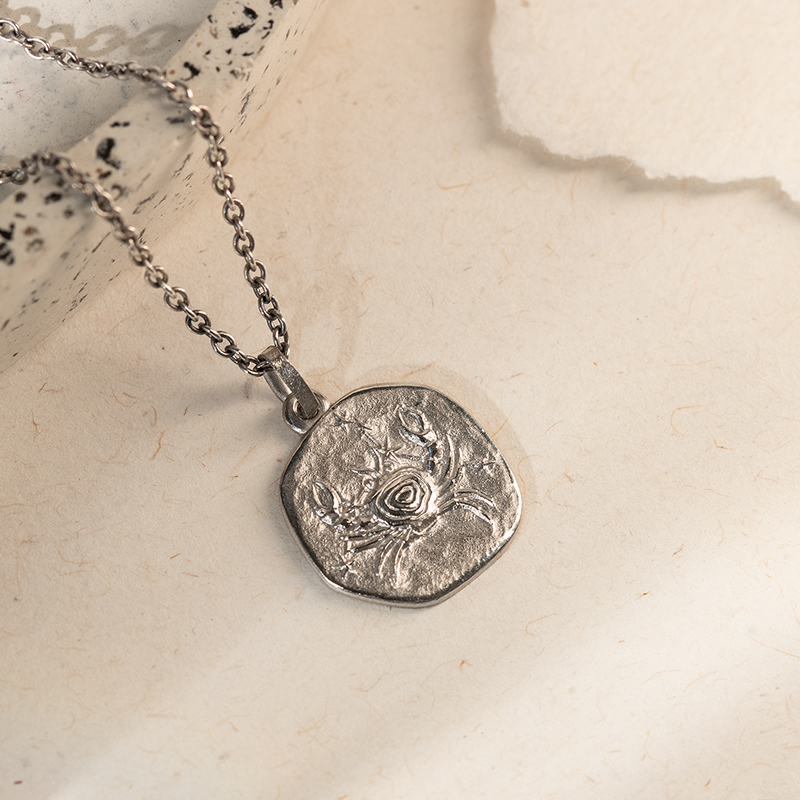 Silberanhänger mit Symbolen des Tierkreiszeichens Krebs