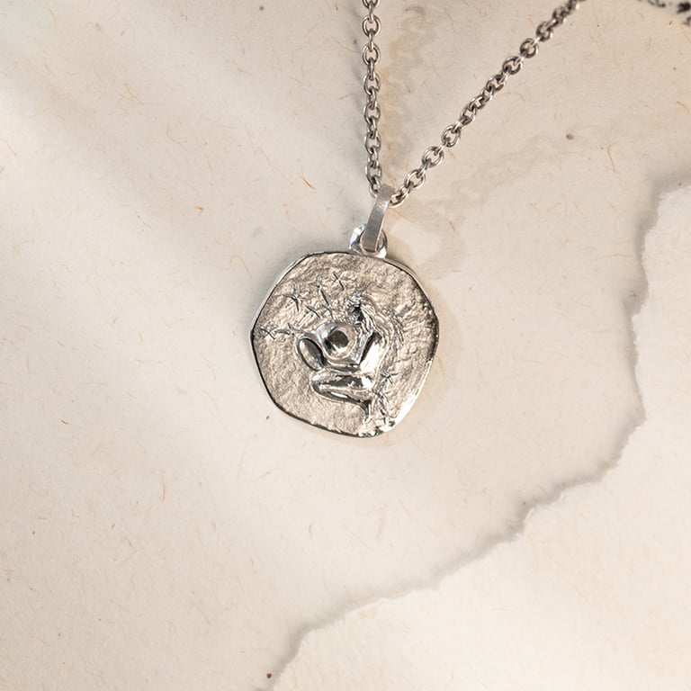Silberanhänger mit Symbolen des Tierkreiszeichens Wassermann