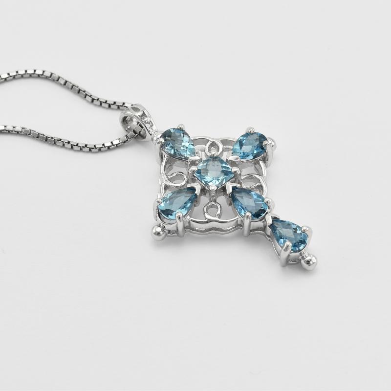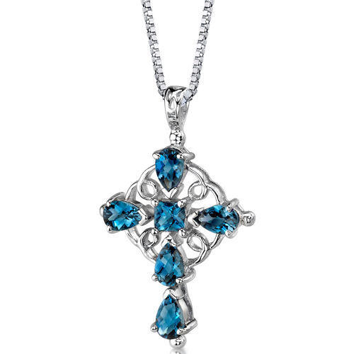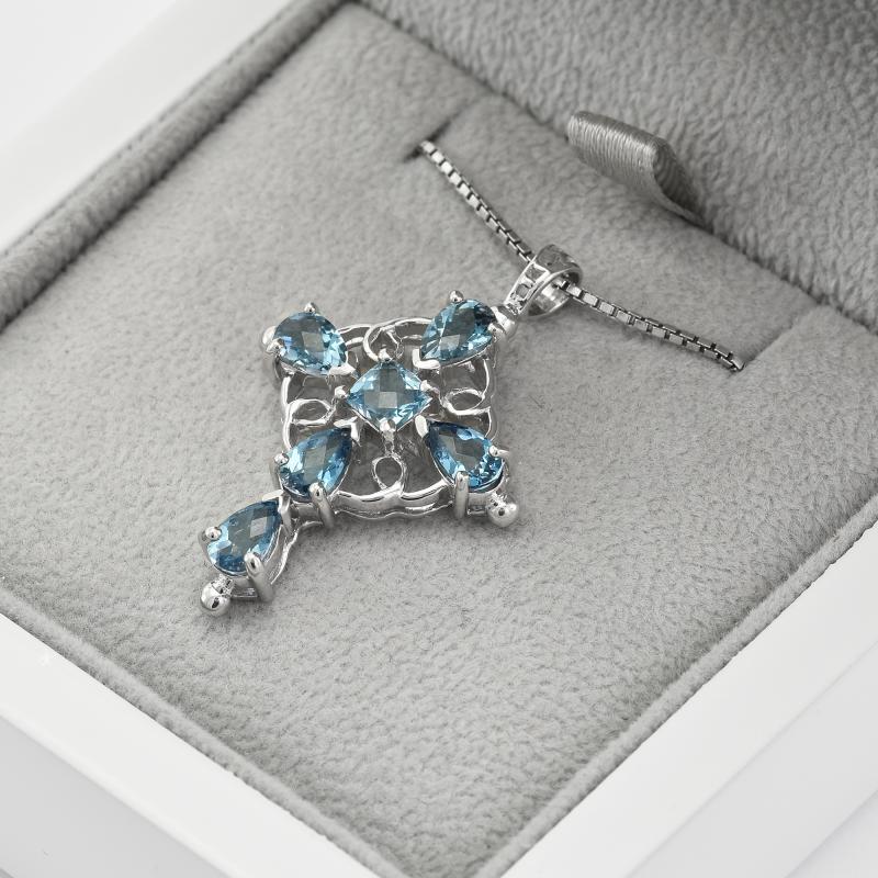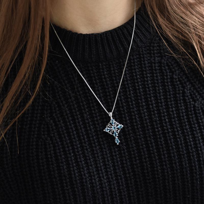 • londoner Blautopase funkeln mit kühlen Farbreflexen auf diesem Kreuzanhänger aus Sterlingsilber