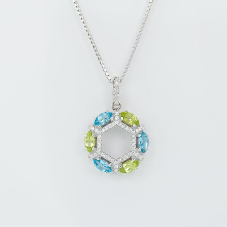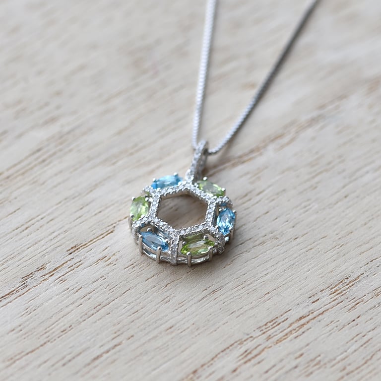 Silberanhänger voller Olivine und Topase Rayni