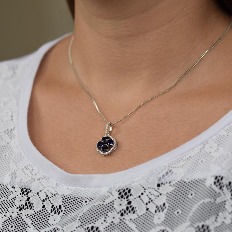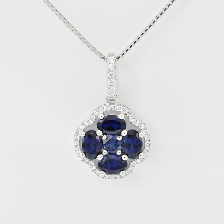 • Saphire, dunkelblau wie der Abendhimmel, machen diesen Anhänger zu einem eleganten Schmuckstück