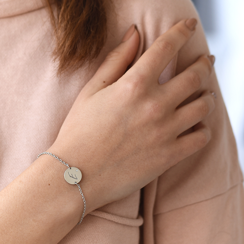 Silberarmband mit Diamant und Buchstabengravur Dian