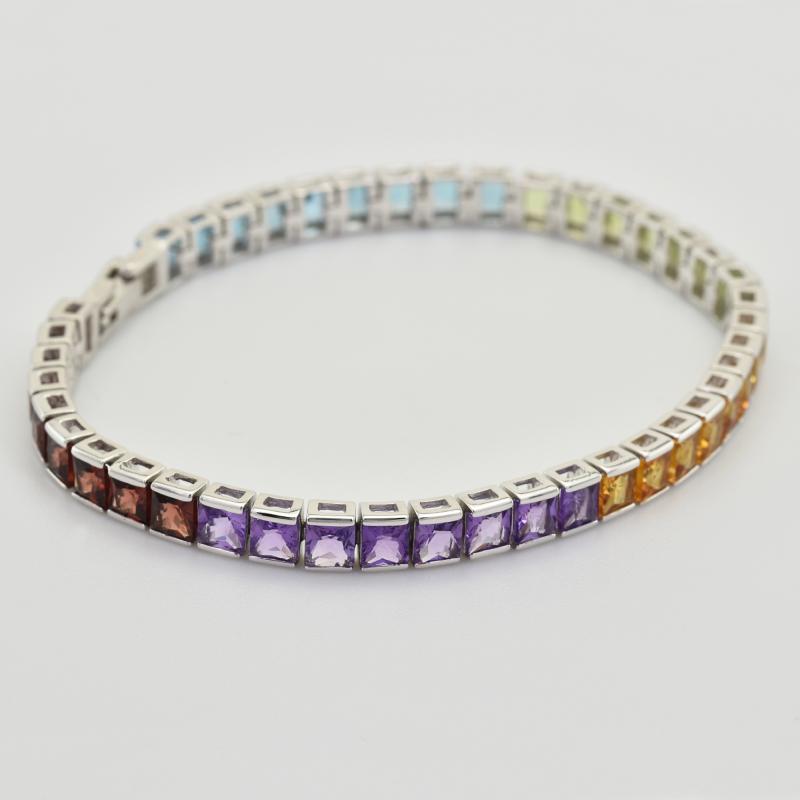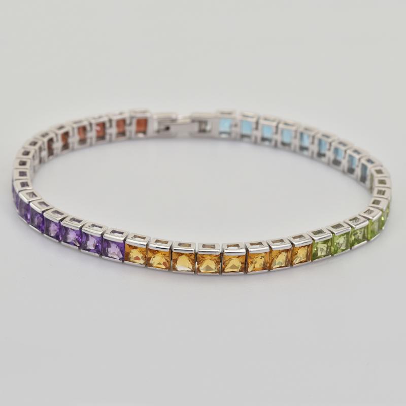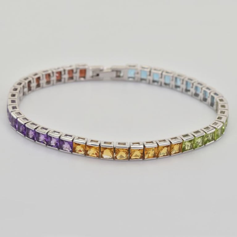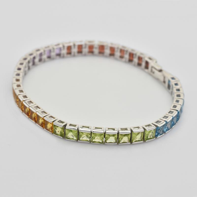 • umdie einzigartige Schönheit des Armbands kümmern sich gleich 5 Arten von Edelsteinen, denn Sie finden in ihm Granaten, Amethyste, Citrine, Olivine und Topase in einer wundervollen Silberfassung