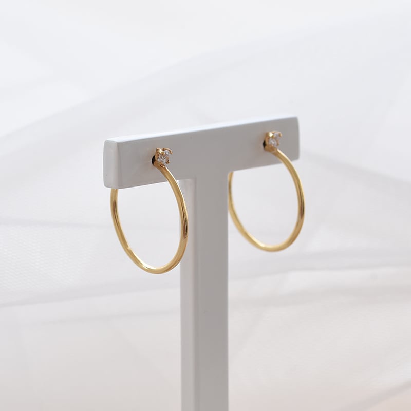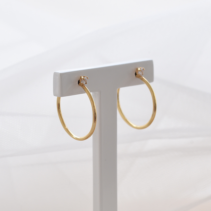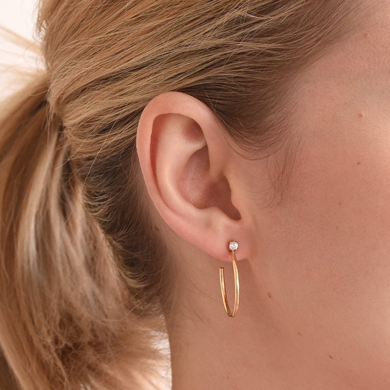 • einfache Ohrringe, die von einem Zirkonia geschmückt sind, der Ihr Gesicht zum Strahlen bringt