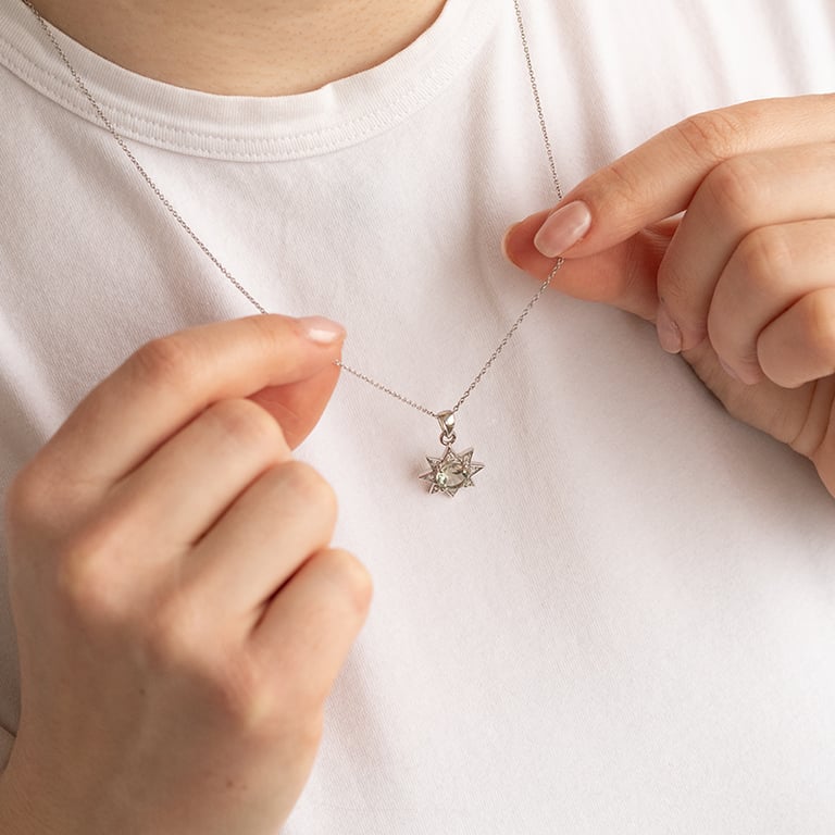 • silberne Kette mit einem Sternanhänger als auffälliger Hingucker