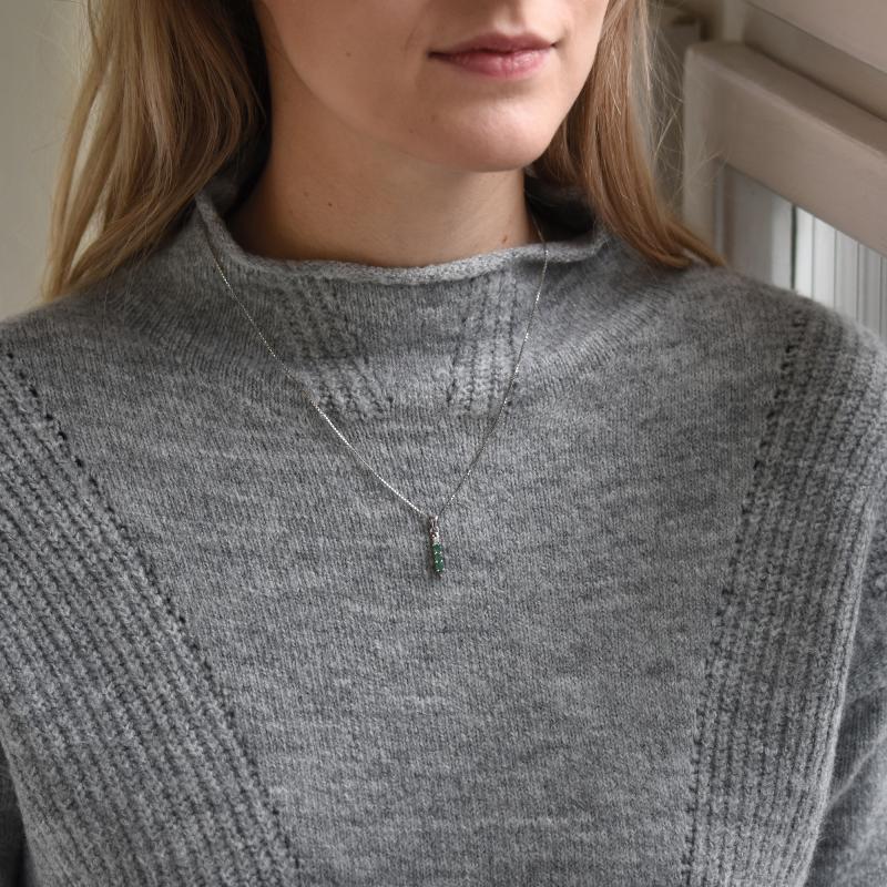• zarter silberner Anhänger mit drei wiesengrünen Smaragden oder drei anderen Edelsteinen