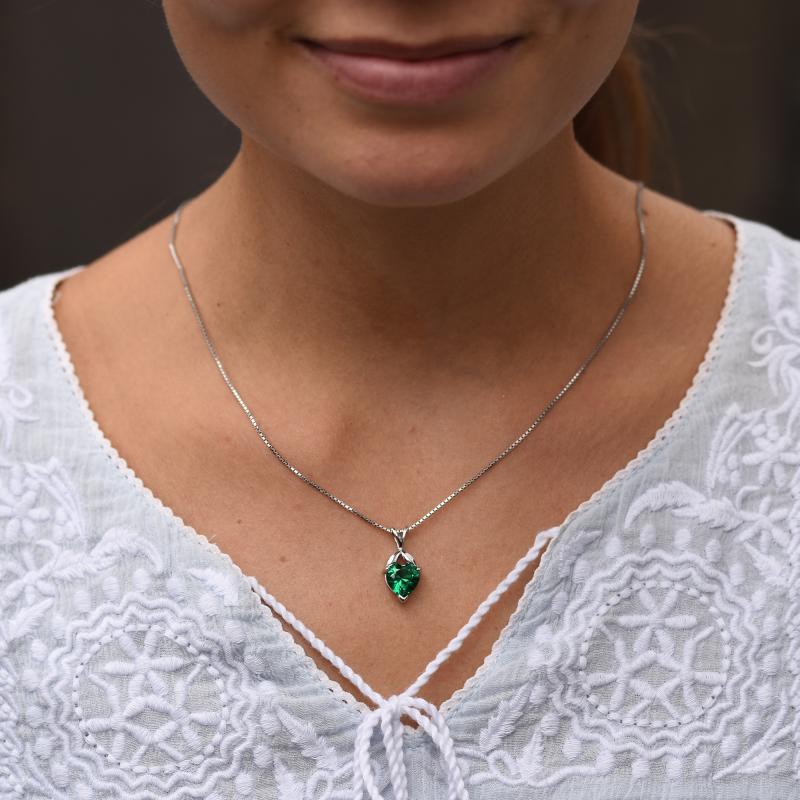 • ein romantischer Silberanhänger mit einem Smaragd in Herzform
