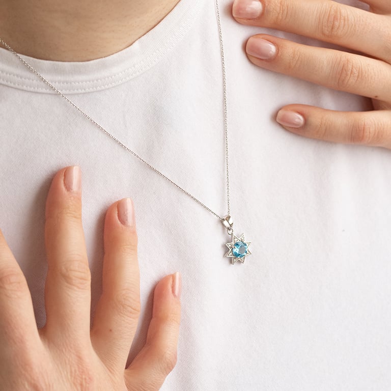 Silberne Anhänger mit Topas und Zirkonia in Sternform Bohemia