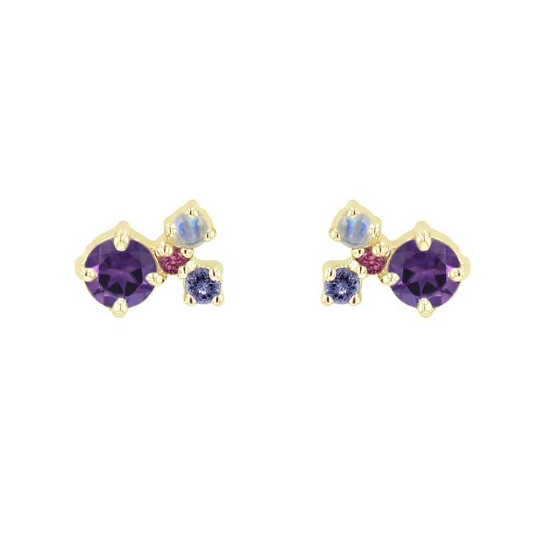 Silberne Cluster Ohrringe mit Amethysten und Edelsteinen Kerrie