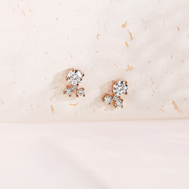 • jeder Ohrring besteht aus einem Cluster aus einem größeren Moissaniten und drei kleineren Lab Grown Diamanten
