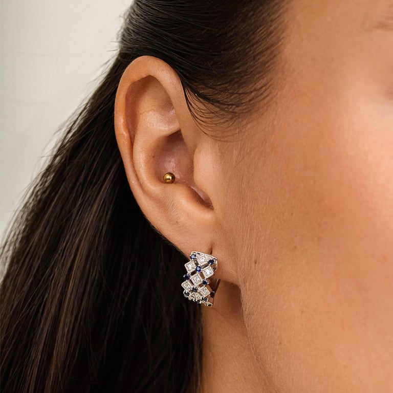 Silberne Creolen mit Lab Grown Diamanten und Saphiren Solveig