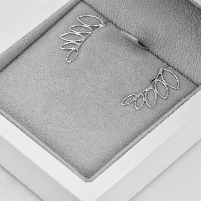 • Ohrringe mit stilisierten Blättern schmücken subtil Ihr gesamtes Ohr und passen zu allen Outfits
