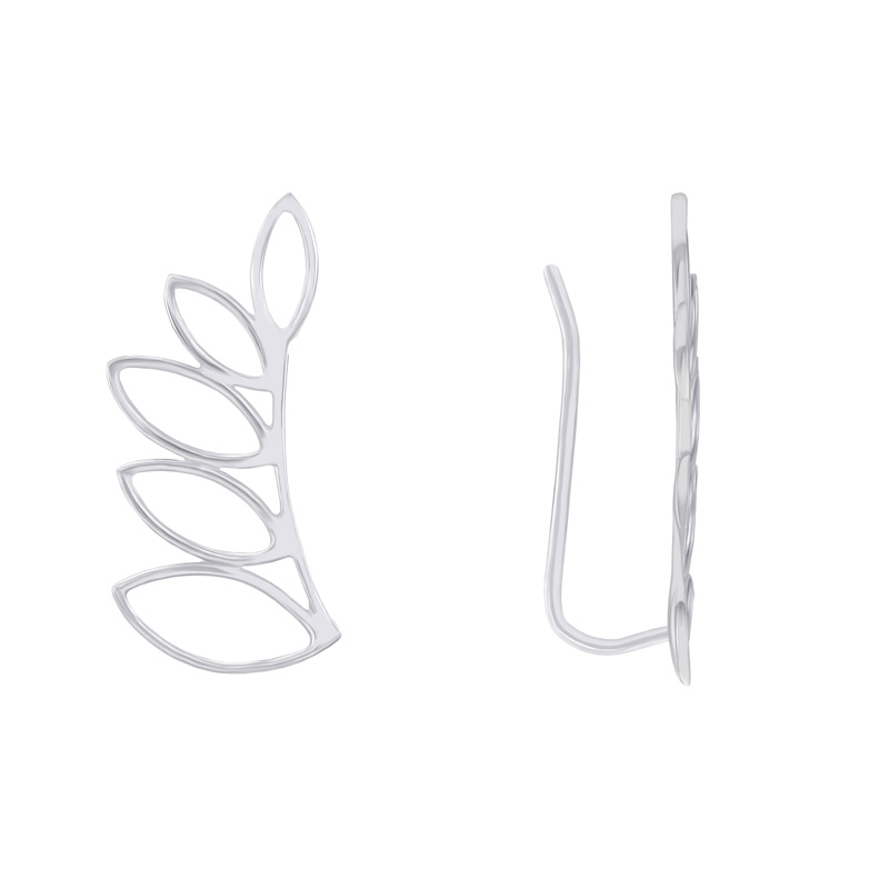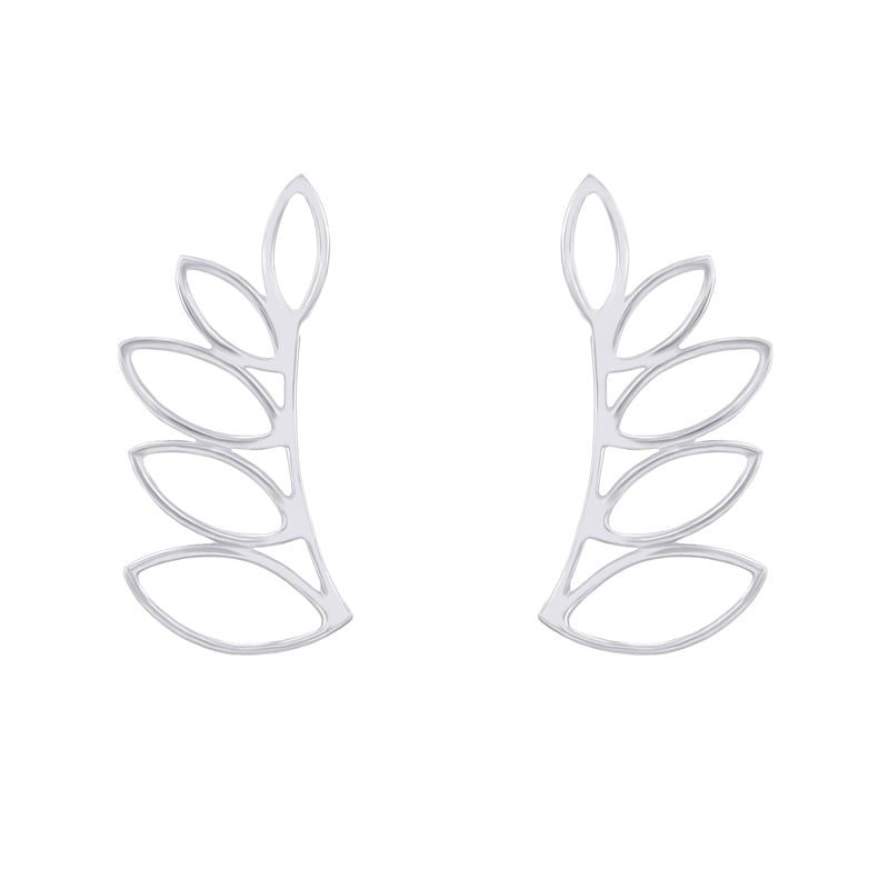 Silberne Ear Climber Ohrringe mit Blattmotiv Belen