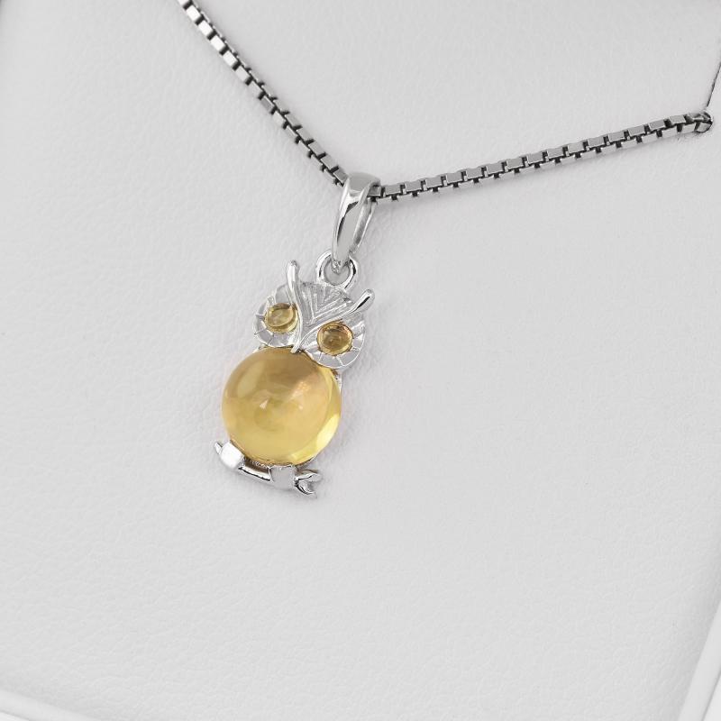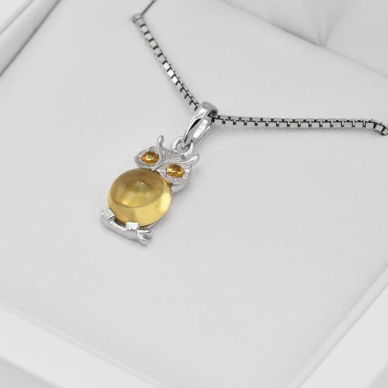 • der runde Citrin wird von der silbernen Fassung in Eulenform perfekt zum Strahlen gebracht