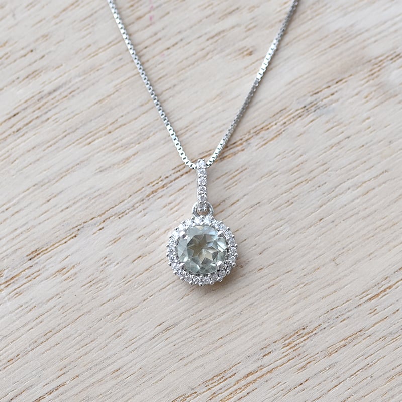 Silberne Halo-Anhänger mit grünem Amethyst und Zirkonia Atia