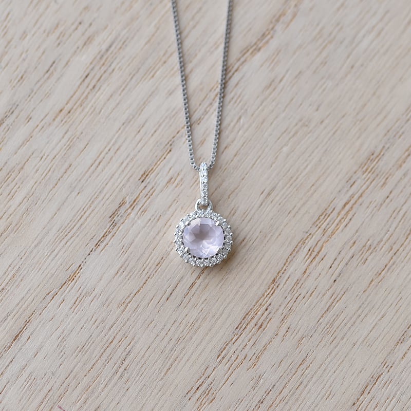 Silberne Halo-Anhänger mit Rosenquarz Atia