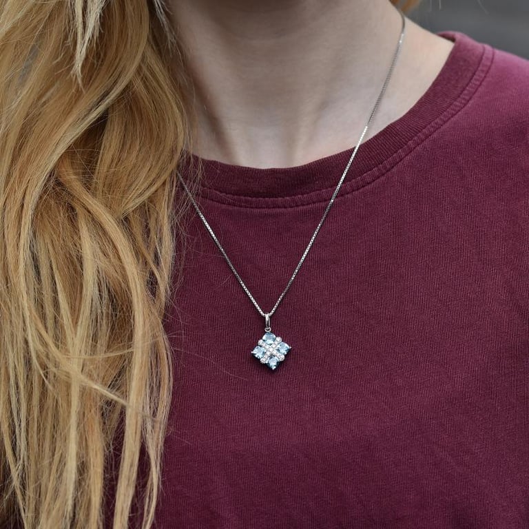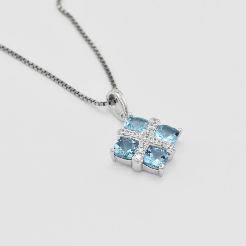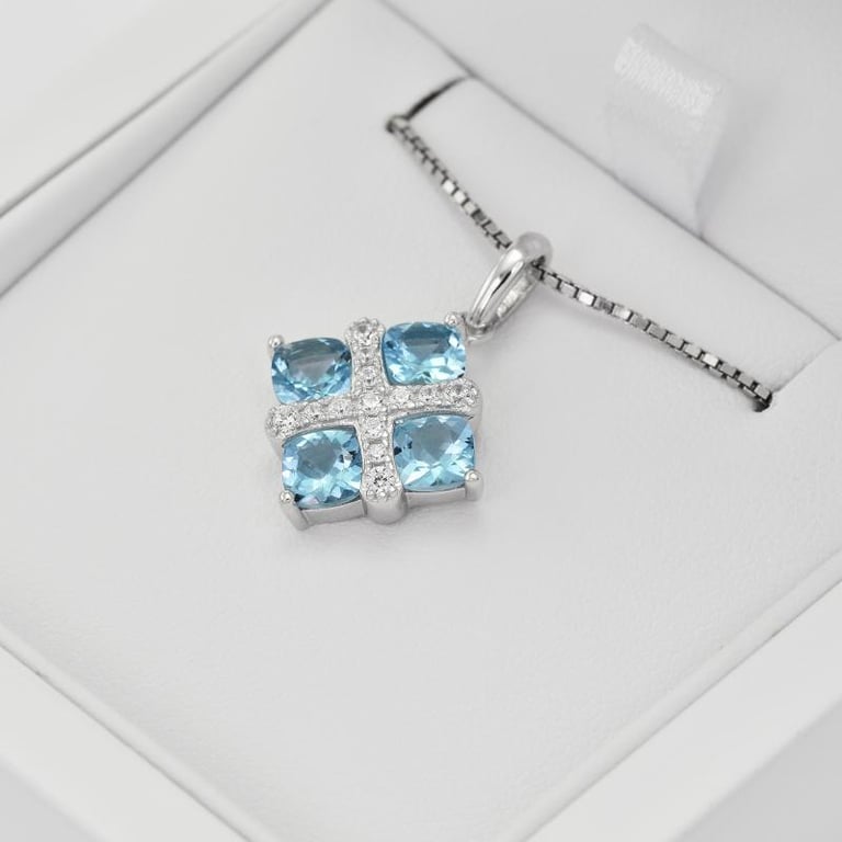• der Silberanhänger funkelt wie ein Bergsee im Eis durch schweizerblaue Topase mit Zirkonia