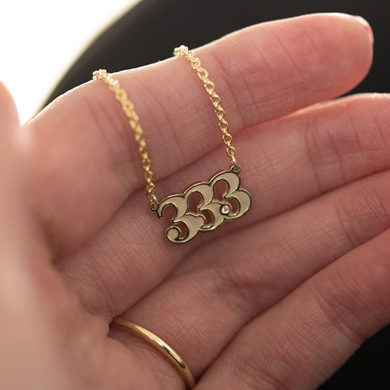 • eine bezaubernde Halskette mit Engelszahlen als Motiv entsprechend Ihrer Wahl