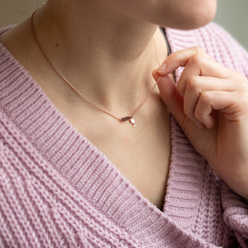 • dezente Halskette mit dem Motiv des beliebten fermentierten Getränks aus Trauben
