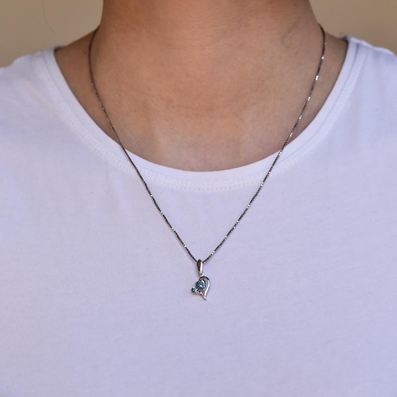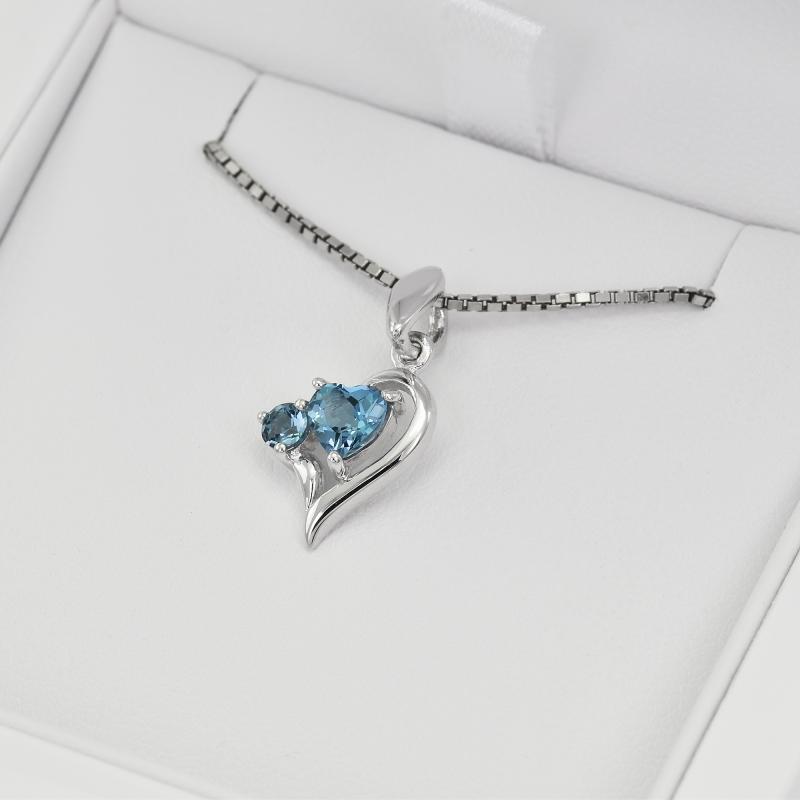 • silberner Anhänger mit einem hell- oder dunkelblauen Topas