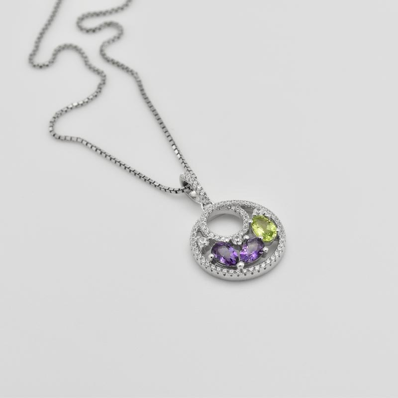 Silberne Halskette mit Olivinen und Amethysten Dusteenah