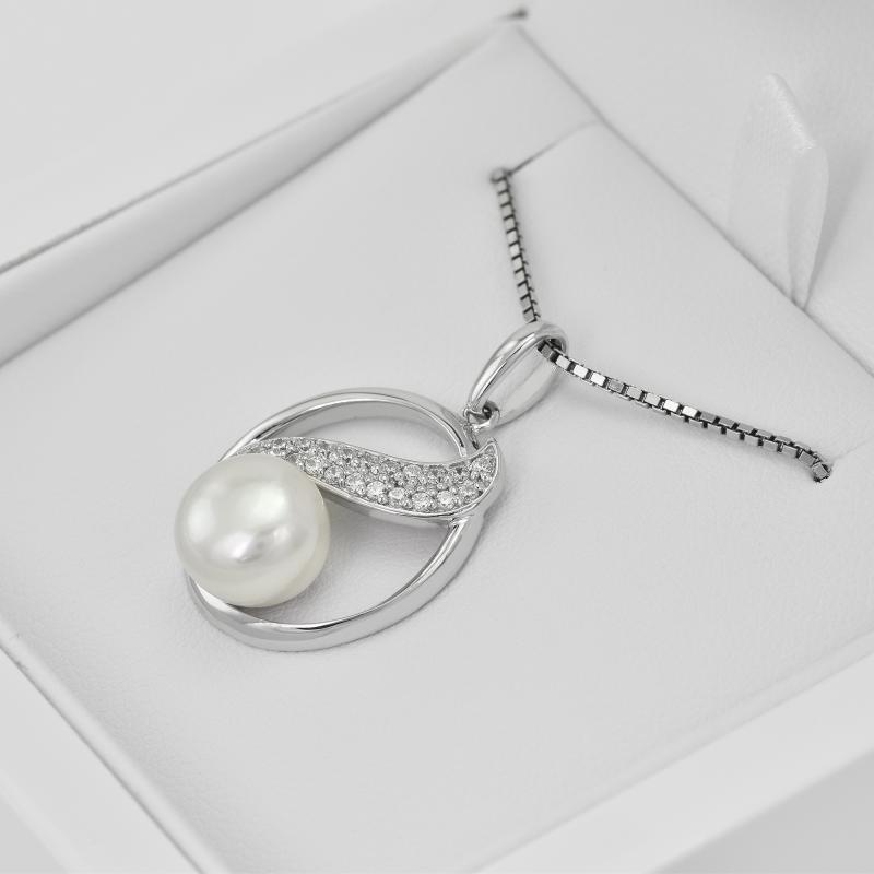 Silberne Halskette mit Perle und Zirkonia Kleio