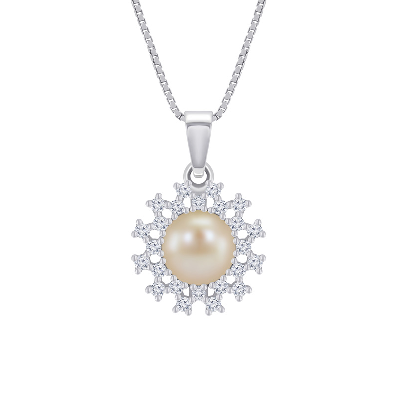 Silberne Anhänger mit pfirsichfarbener Perle und Zirkonia Ninetta