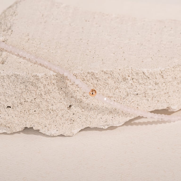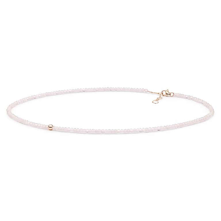 • zarte Halskette aus vergoldetem Silber mit Rosenquarz-Perlen