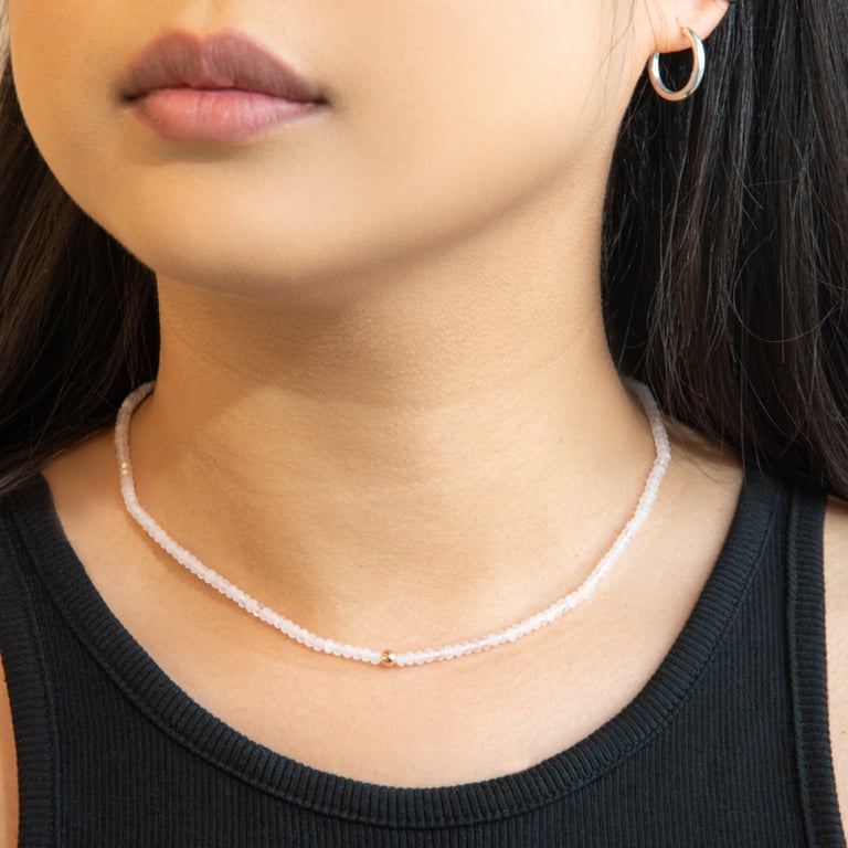 Silberne Halskette mit Rosenquarz-Perlen Rosa