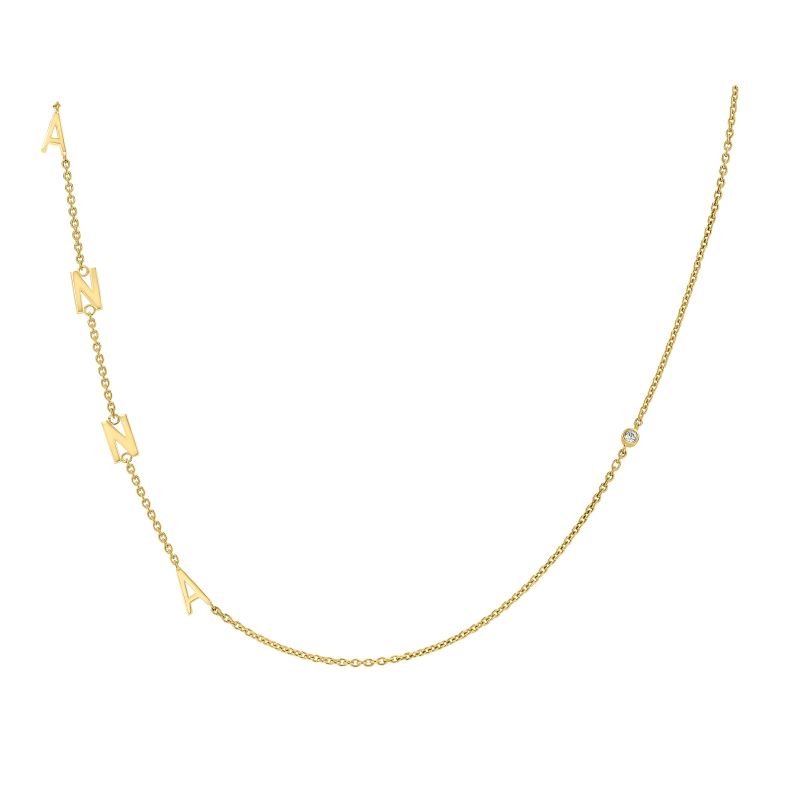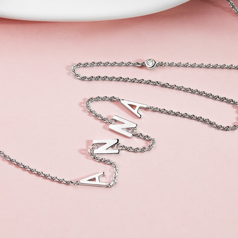 • die zarte Kette ist mit vier Buchstaben Ihrer Wahl und einem funkelnden, im Labor hergestellten Diamanten verziert