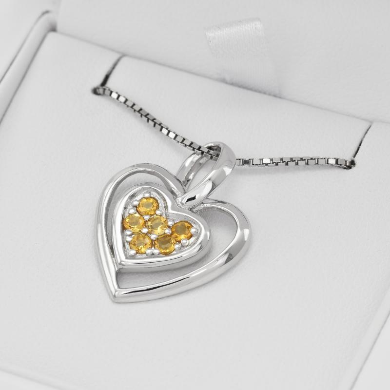 • sattgelbe Citrine sind der Mittelpunkt dieses Silberanhängers in Herzform, der bildlich die Sonne im Herzen hat