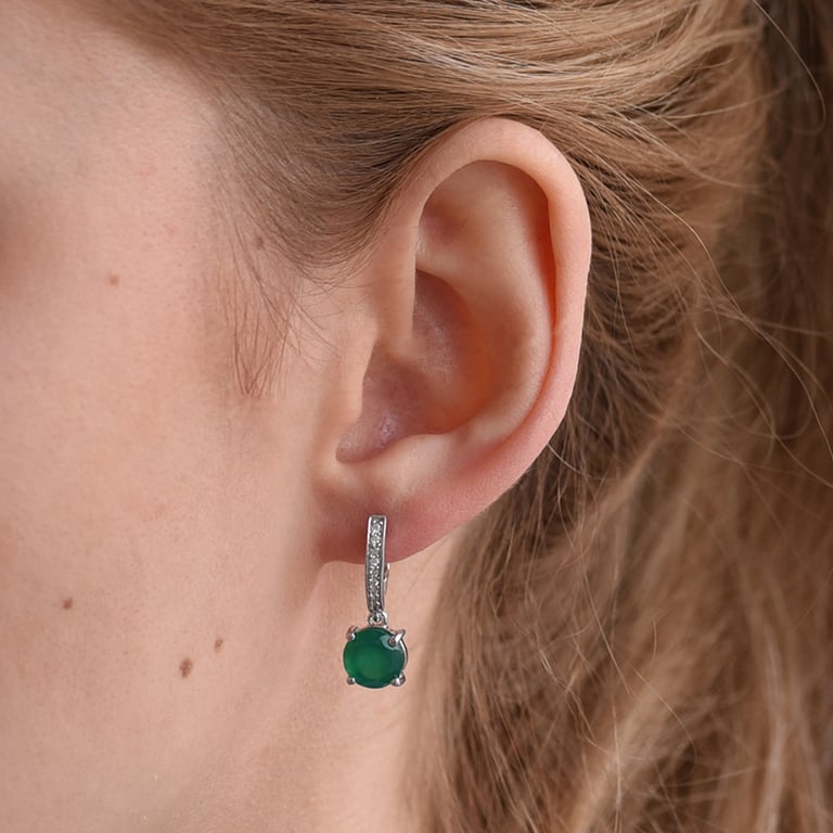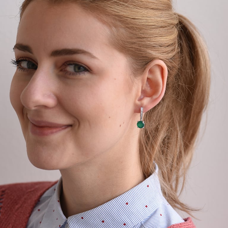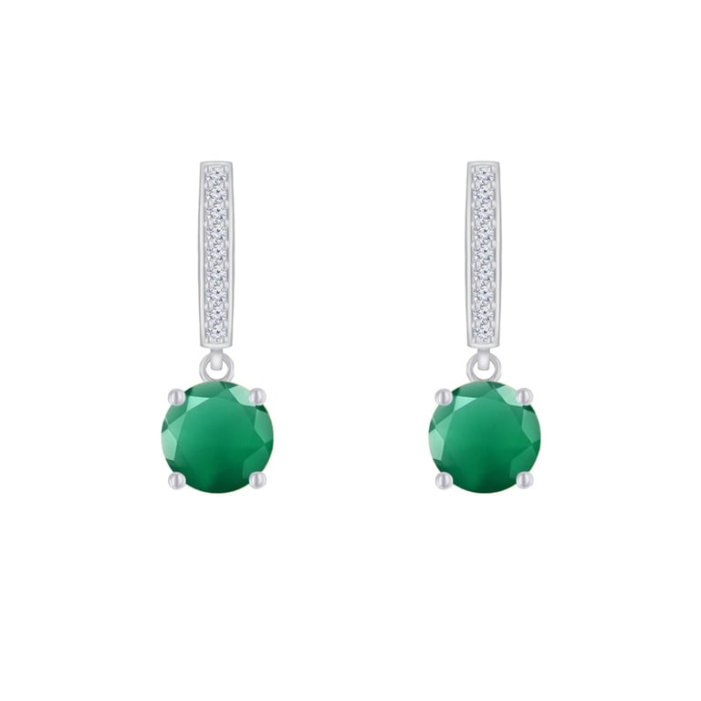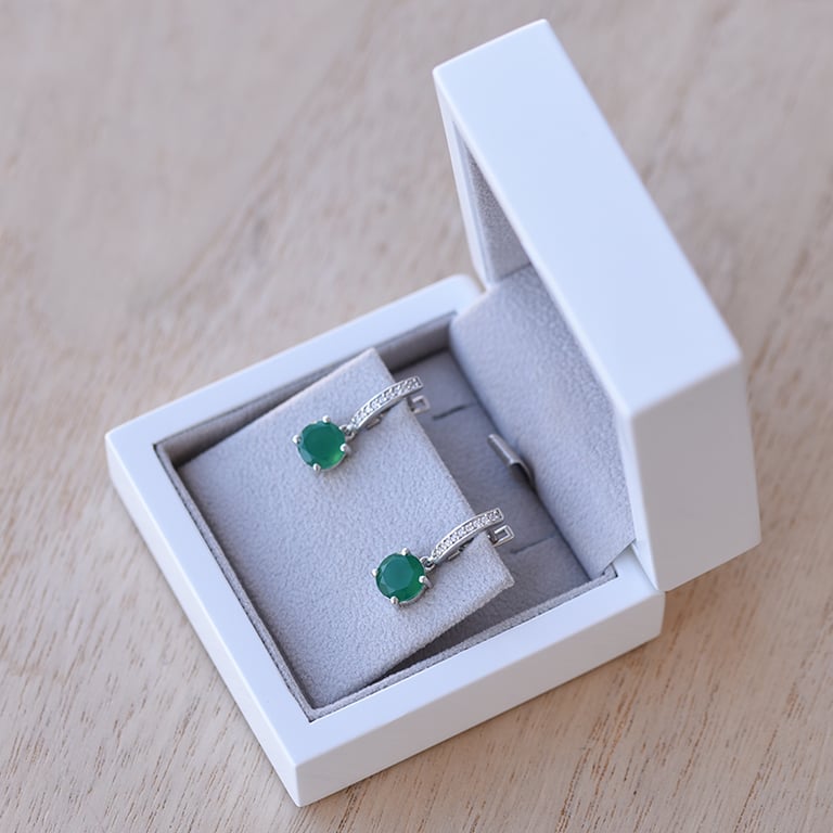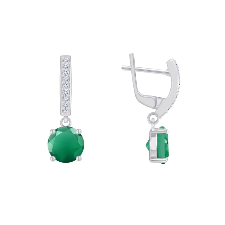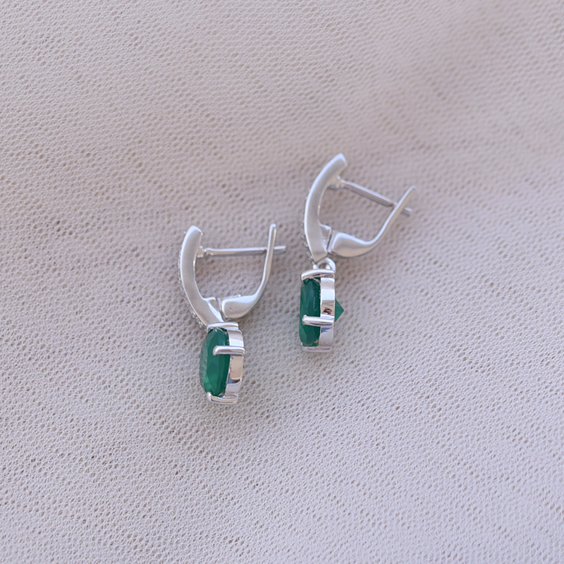 Silberne Hängeohrringe mit grünem Onyx und Zirkonia Claret