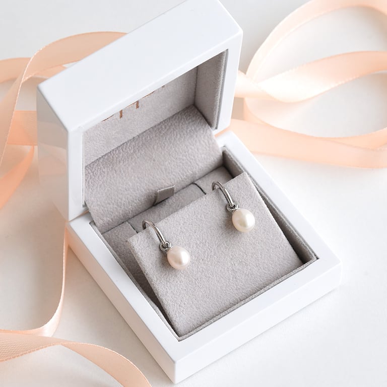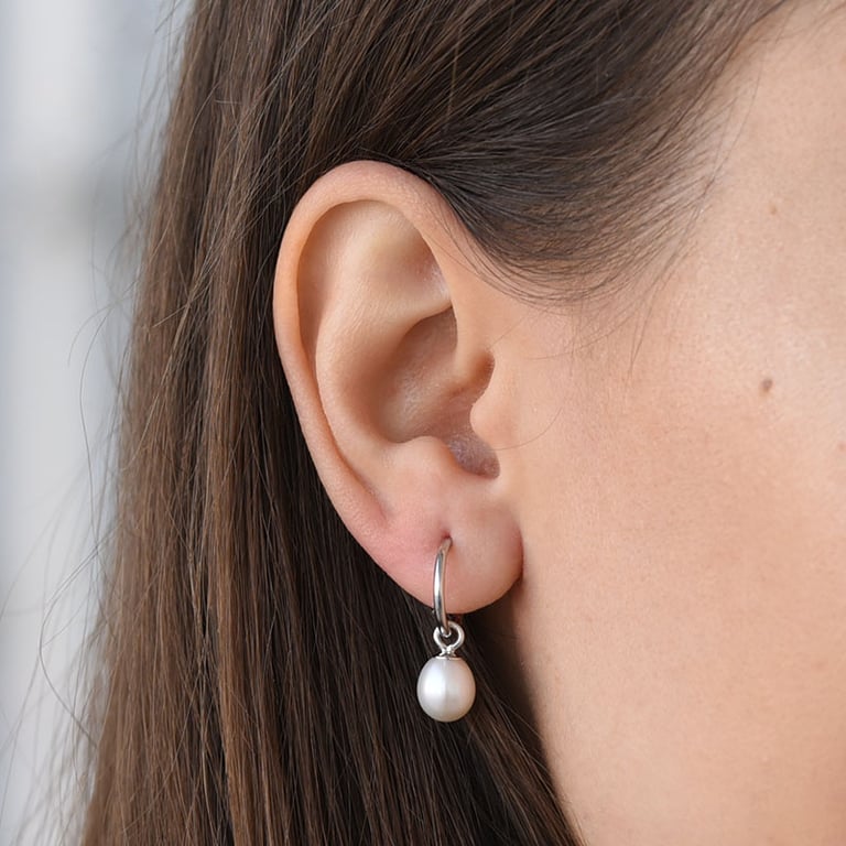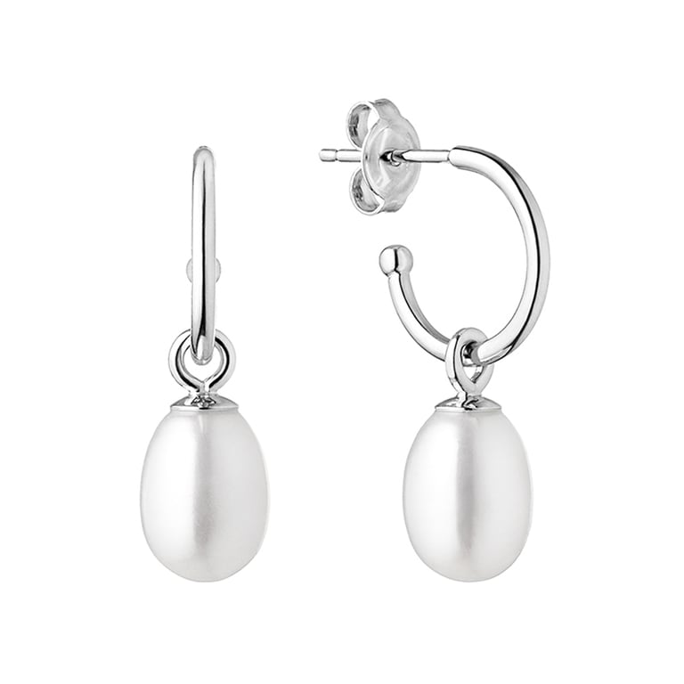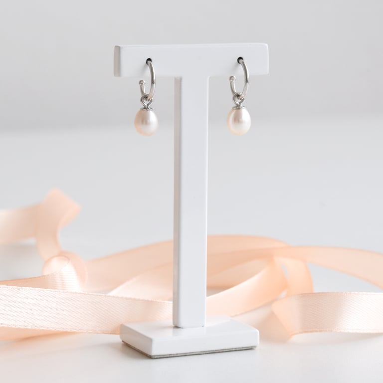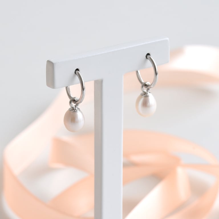 • schlichte, weiße Perlenohrringe in Kombination mit elegantem Silber